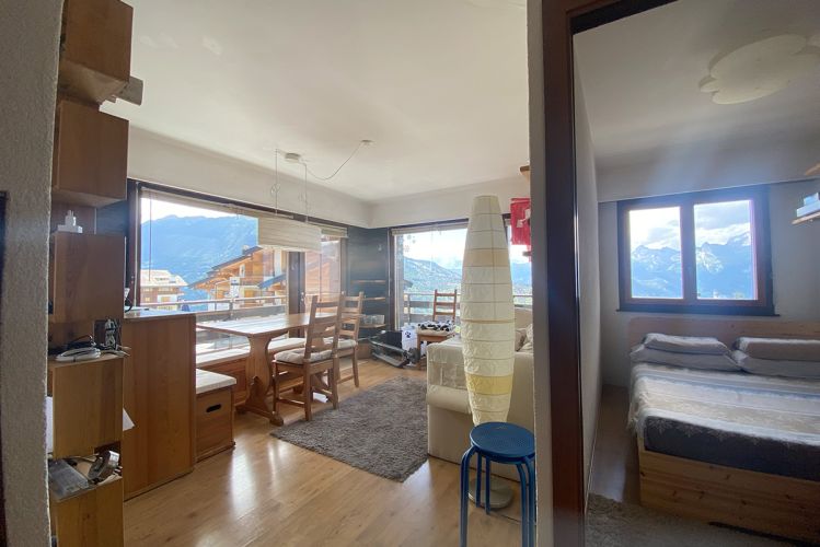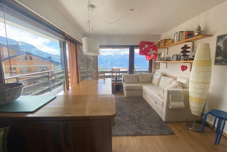 Cet appartement de 38 m² avec un balcon de 15 m² est un véritable cocon alpin au cœur de la station de Veysonnaz.