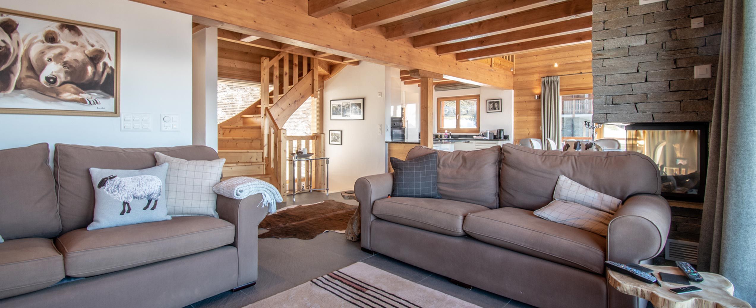 Après une journée sur les pistes, détendez-vous près de la cheminée dans le salon chaleureux ou profitez de la vue panoramique depuis le balcon ou la terrasse. À seulement quelques marches de la piste, le chalet vous permet de vivre l’expérience ski-in/ski-out en toute simplicité.