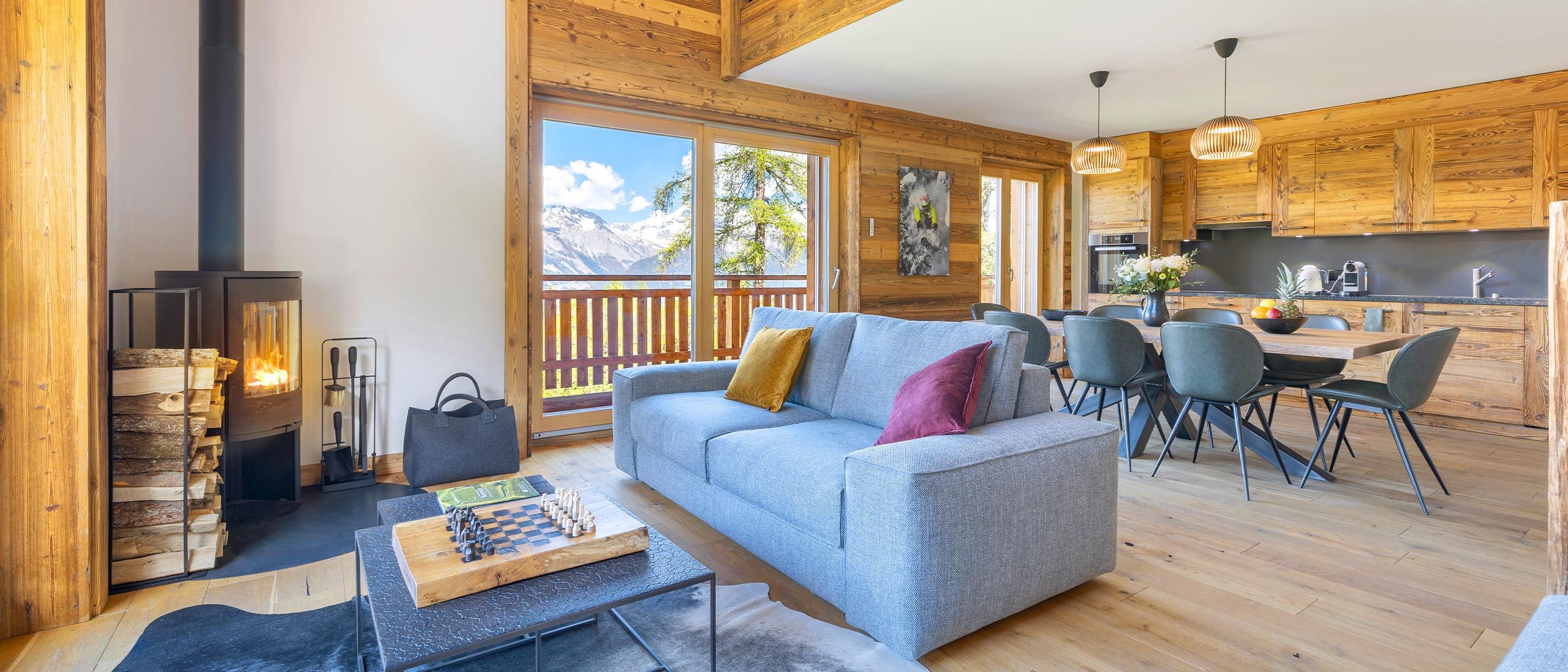 Le Penthouse on the Piste conjugue avec élégance le charme intemporel des chalets alpins et le raffinement du luxe moderne, pour une escapade en montagne hors du commun. Ce somptueux penthouse de 200 m² séduit par son atmosphère authentique et chaleureuse. Ses poutres apparentes, typiques des chalets traditionnels, et sa cheminée accueillante invitent à la convivialité, tandis que de vastes baies vitrées baignent les espaces de lumière naturelle et dévoilent un panorama à couper le souffle sur les cimes enneigées.